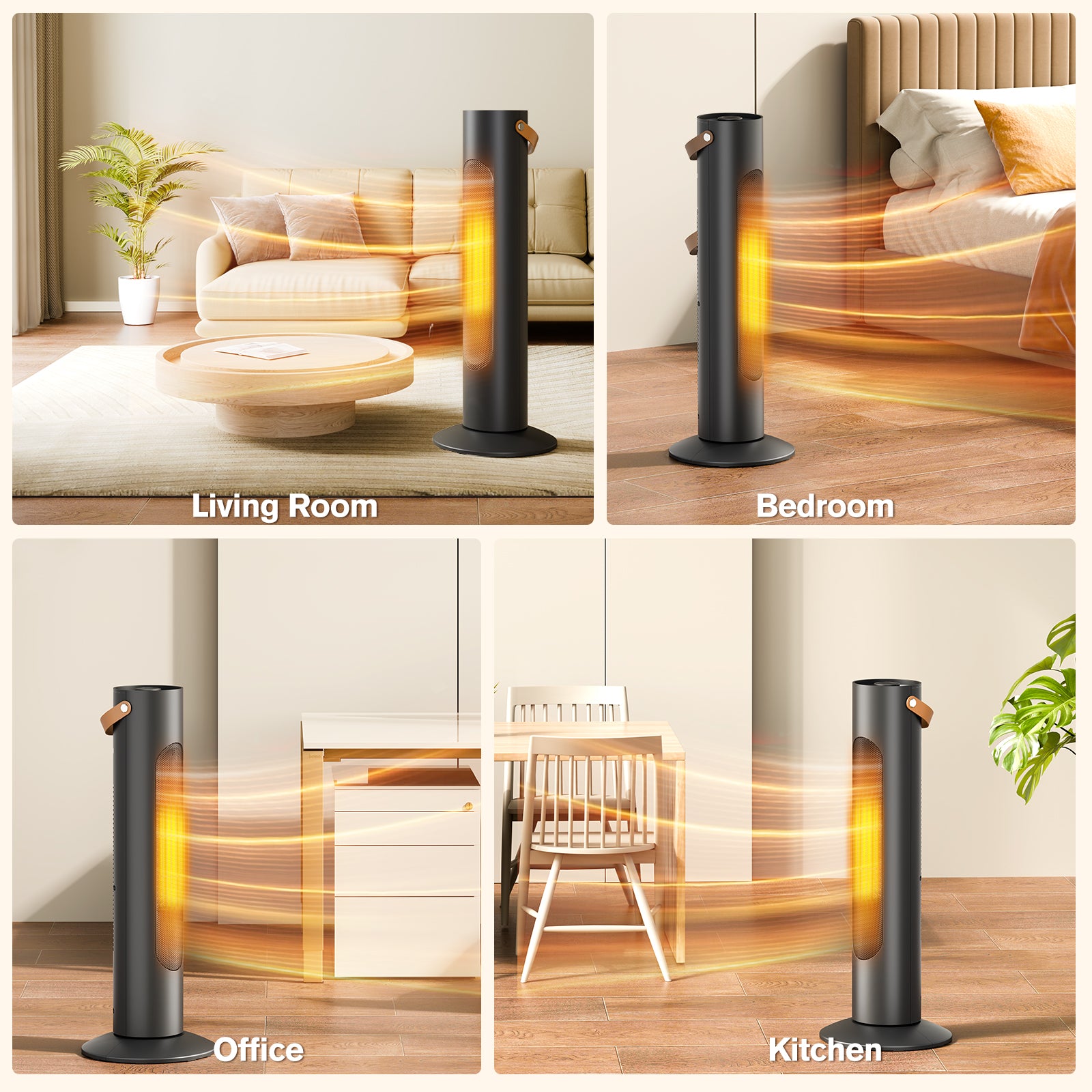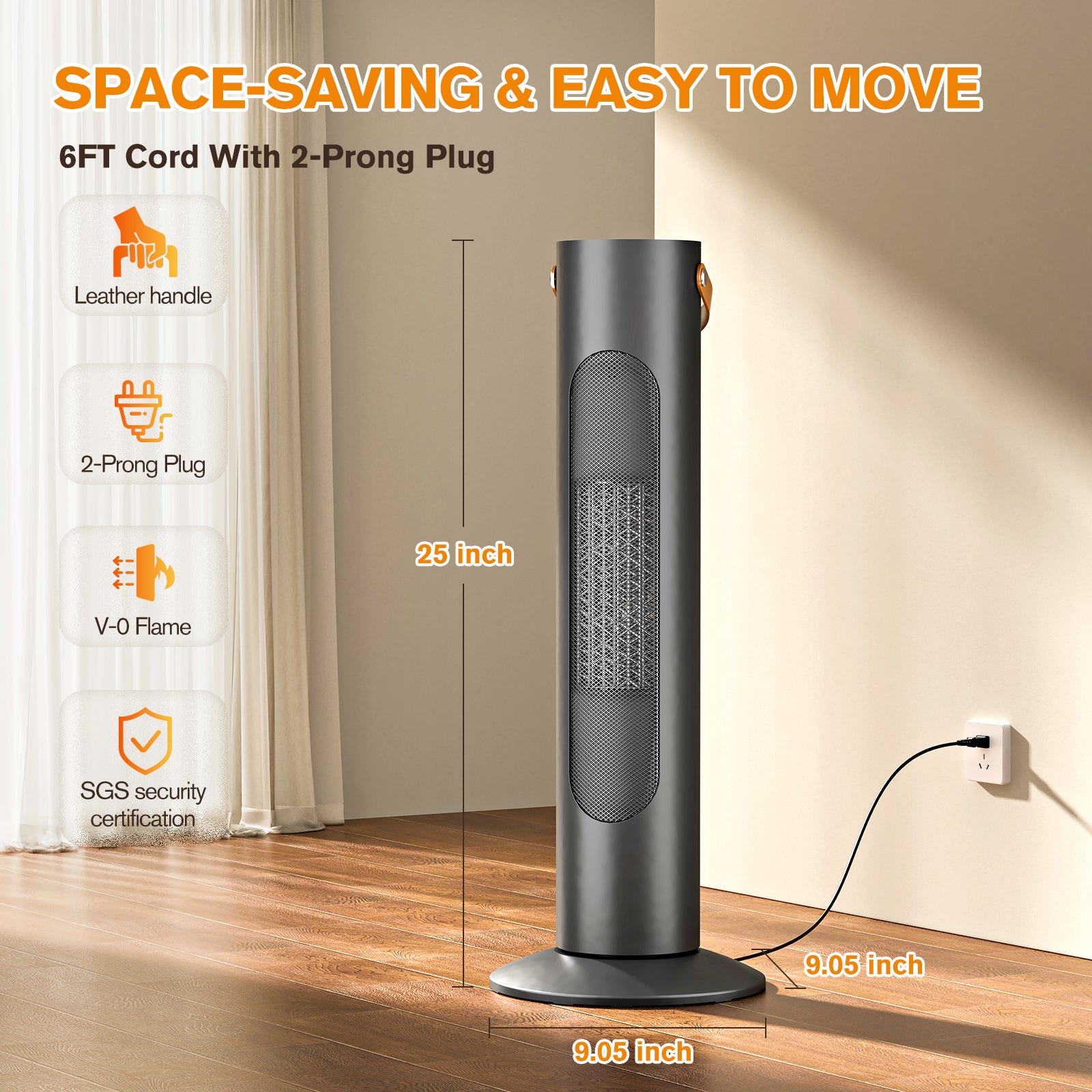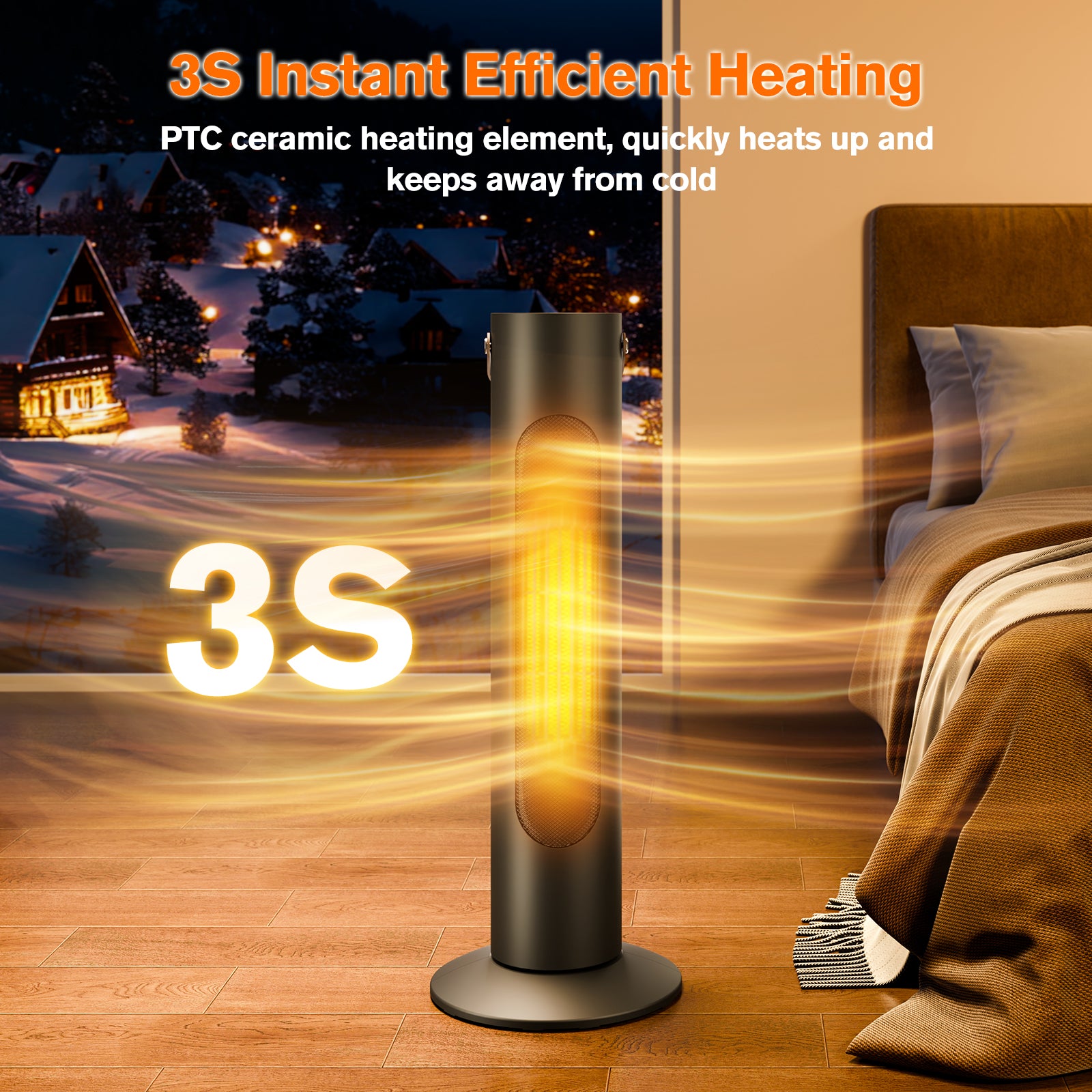 2-1 Electric Space Heaters For Indoor Use, 25" Tower Heater And Fan Combo, 70°Oscillating, 3S Instant Heating,1500W, 3 Heating & Fan Modes, Electric Portable Heater For BedroomOfficeHome, Dark Black