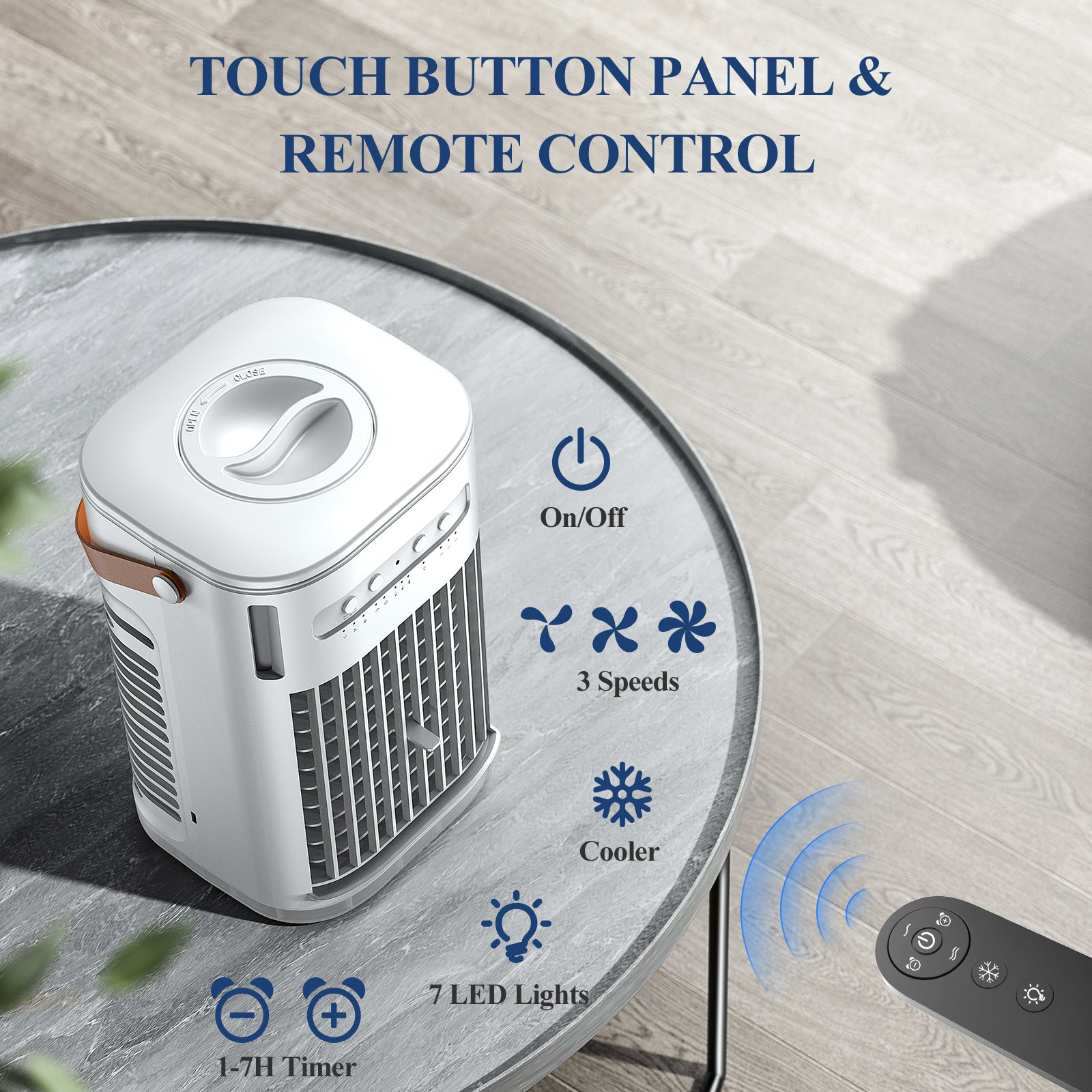 - ๐งใ๐ฏ-๐๐ก-๐ญ ๐๐ถ๐ด๐ต ๐๐ณ๐ณ๐ถ๐ฐ๐ถ๐ฒ๐ป๐ฐ๐ใThe mini evaporative air cooler integrates all the functions you want. Add water or ice water to the water tank, it will release water mist and cooling effect stronger, beat the dryness in summer.