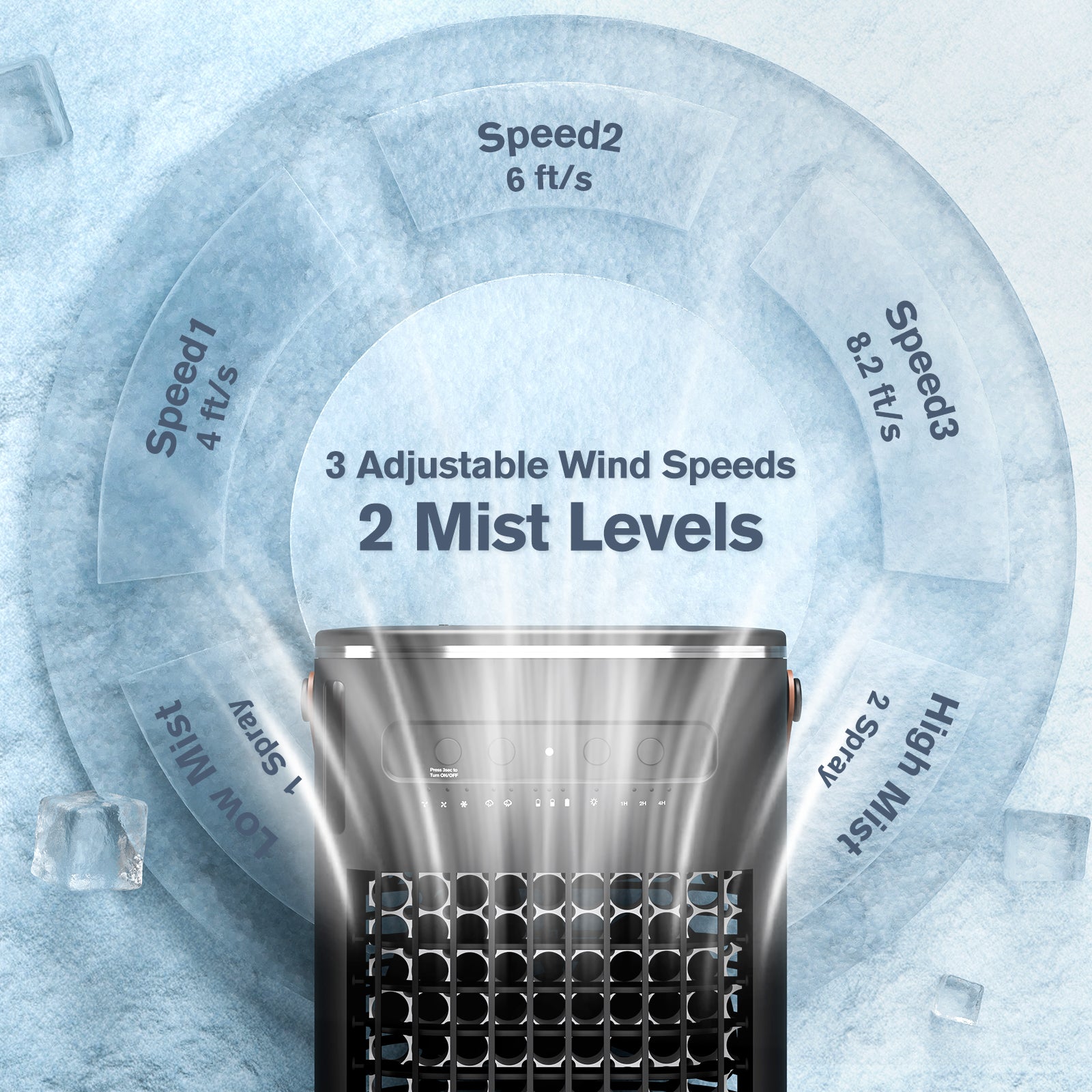 - βγπ-ππ-π ππ’π« ππ¨π¨π₯ππ« ππ¨π« ππ«π² ππ₯π’π¦ππππ¬γTailor your comfort to the season with three versatile modes. Use the "Fan mode" for a refreshing breeze in stuffy roomsβno water needed. On cooler yet dry days, switch to the "Humidification function" by filling the water tank. When the heat peaks during summer, maximize your relief with the "Cooling mode": fill the tank with ice water and two ice packs for optimal temperature reduction.